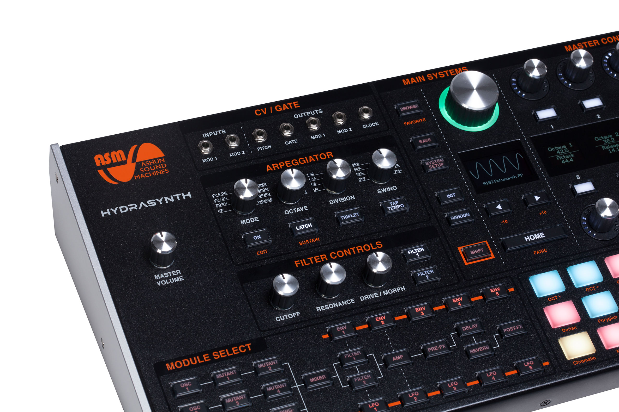 As for the performance capabilities, The Hydrasynth Desktop / Rack has 24 polyphonic pressure touch pads so that you can play the unit without needing to connect a keyboard or other controller. Using multiple pad layout modes as well as quick to access scale modes, the Hydrasynth Desktop / Rack is easy to make music on.
