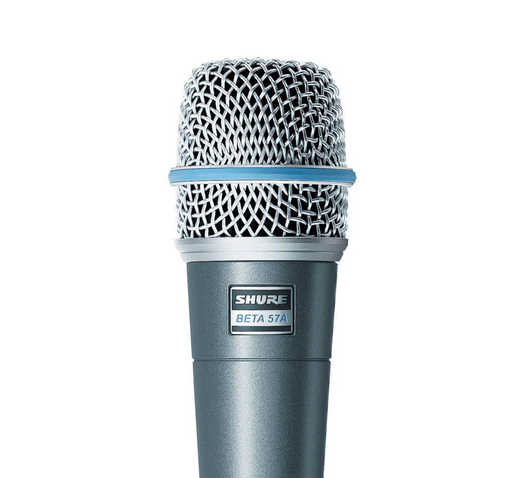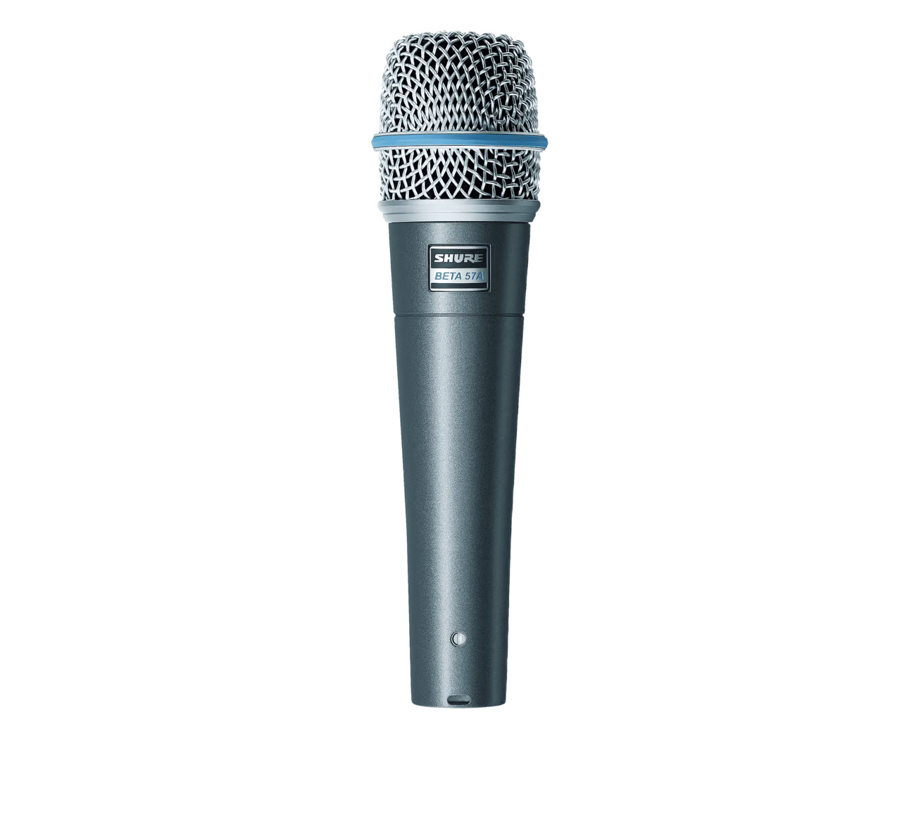 The Shure Beta 57A is a precision-engineered, dynamic microphone designed for professional live sound reinforcement and studio recording. A tight, supercardioid pattern delivers high gain before feedback, maximum sound isolation, and minimum off-axis tone coloration.
