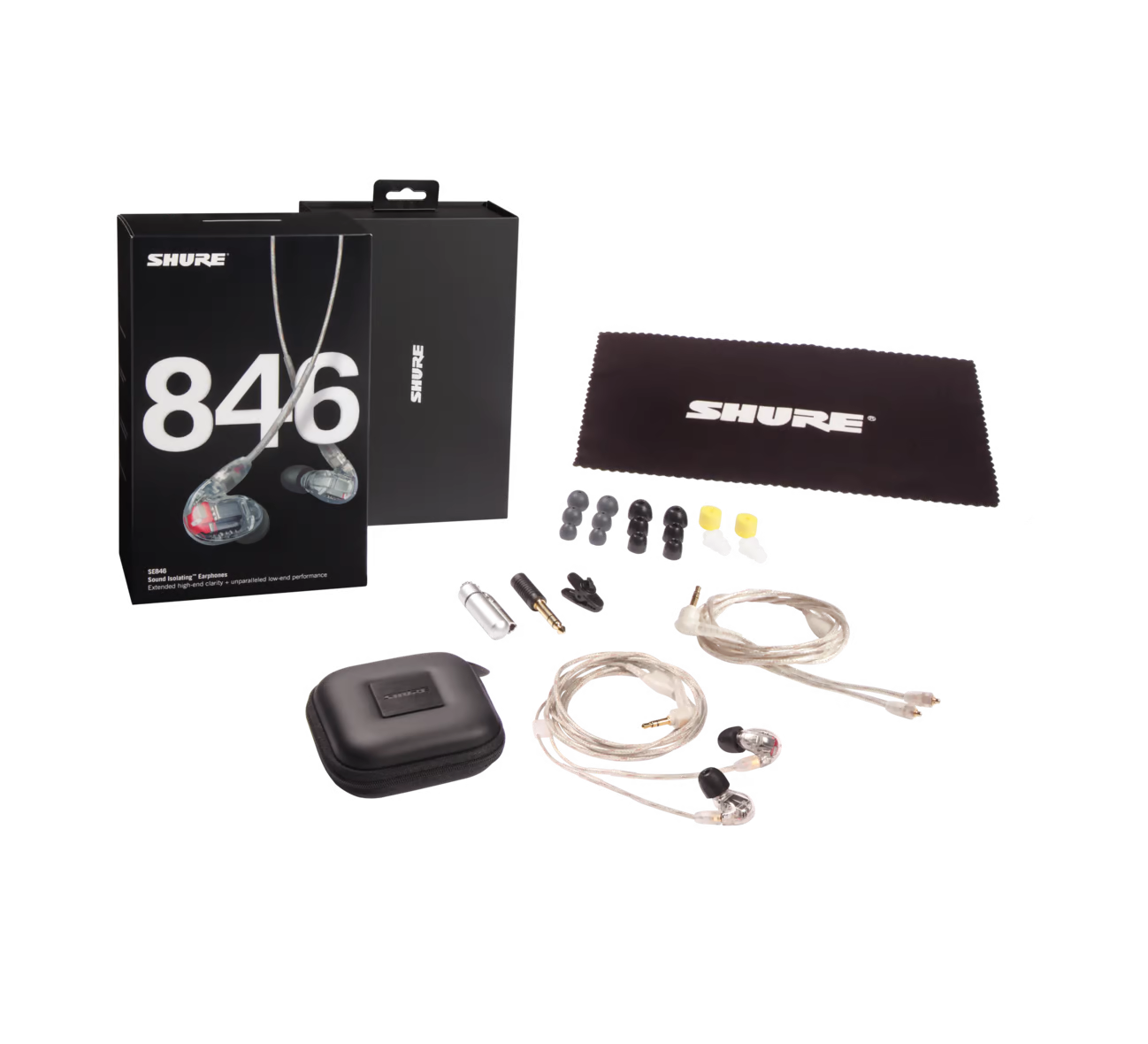 SE846 Professional Sound Isolating™ Earphones deliver extended high-end clarity + unparalleled low-end performance through quad high-definition drivers. The durable, secure design includes a detachable cable with wireform fit to keep earphones in place and cables out of the way. Sound Isolating technology with selection of sleeves blocks up to 37 dB of outside noise and ensures custom, comfortable fit; while a removable metal nozzle with changeable inserts allows for further customization of frequency response. Includes a premium carrying case, 1/4” adapter, fit kit with wide selection of sleeves, and nozzle removal tool with changeable inserts.