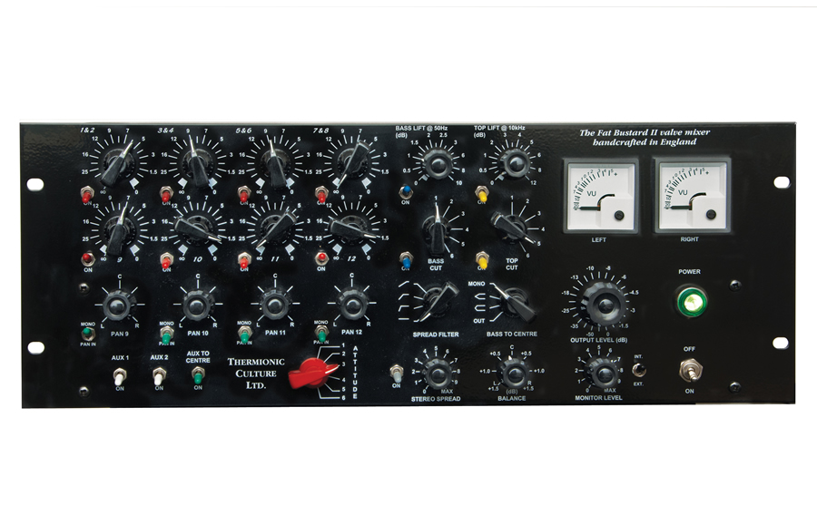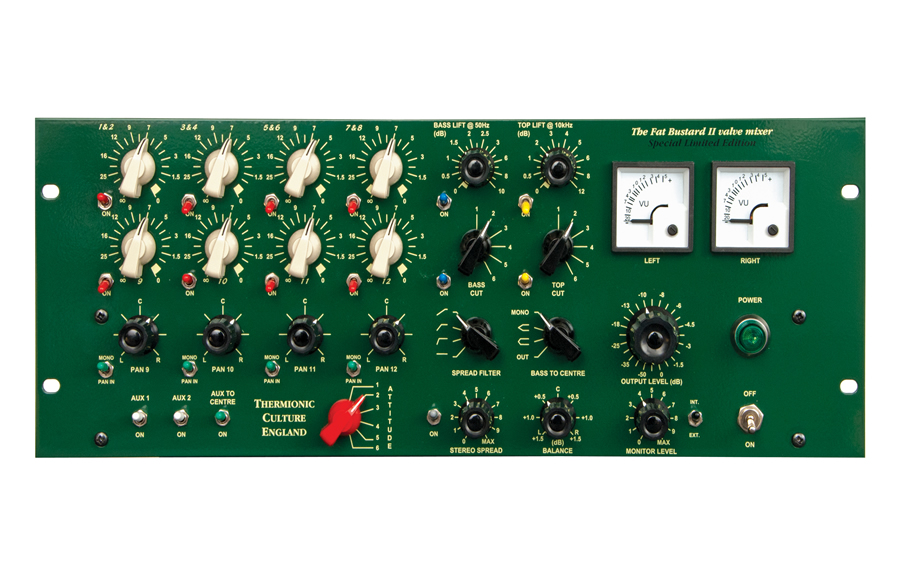 Ligsom hos mange andre summeboxe er Stereo spread også en nøglefunktion hos Fat Bustard, men så holder lighederne til gengæld også op. Fat-Bustard har, til forskel for konkurenterne, Bass to center funktion, der sørger for du stadig har bunden i midten, selvom du har lavet det maksimale stereospread, en EQ med bass lift, bass cut, treble lift og treble cut, og så har den attitudeknap. Attitudeknappen er ganske simpelt et udpluk af Culture Vulturens distortion muligheder, der er sat i, så man kan få lidt rørdistortion på sit mix. Det kan måske lyde mærkeligt på nogen, men det er fordi di ikke har hørt hvordan det lyder!