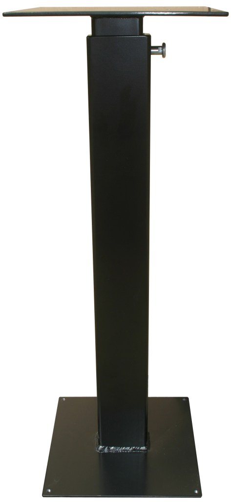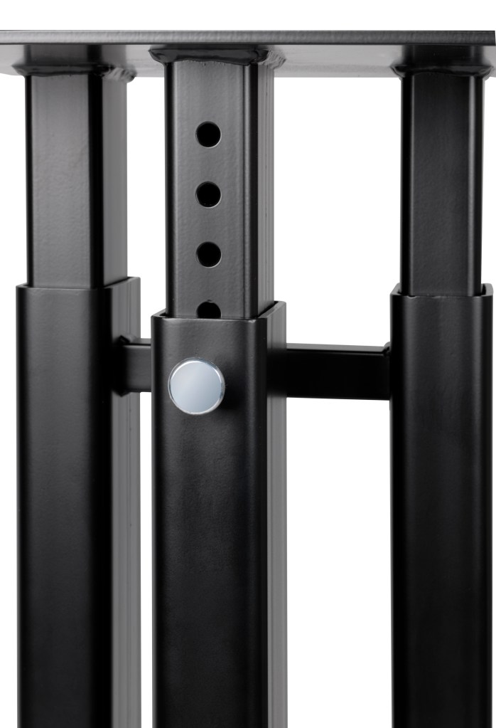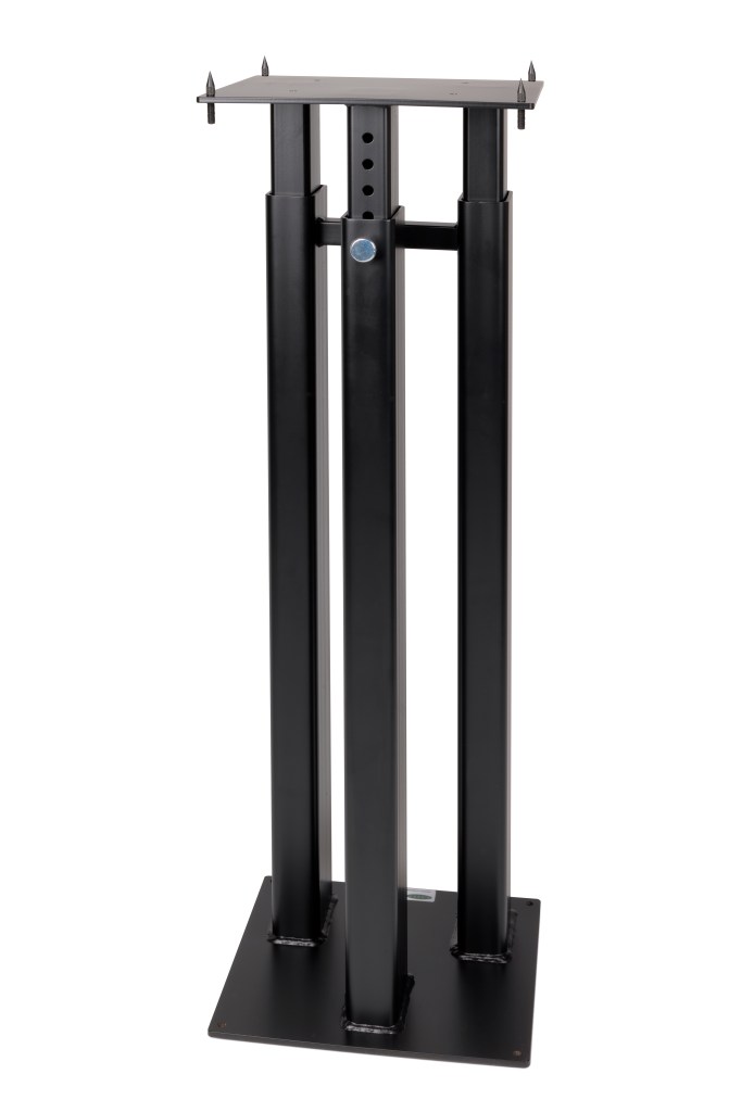 Monolith er er lavet i stål og med spikes til at stille højtalerne på. De kan højdejusteres alt efter hvad man behøver, ved at hive en bolt ud.