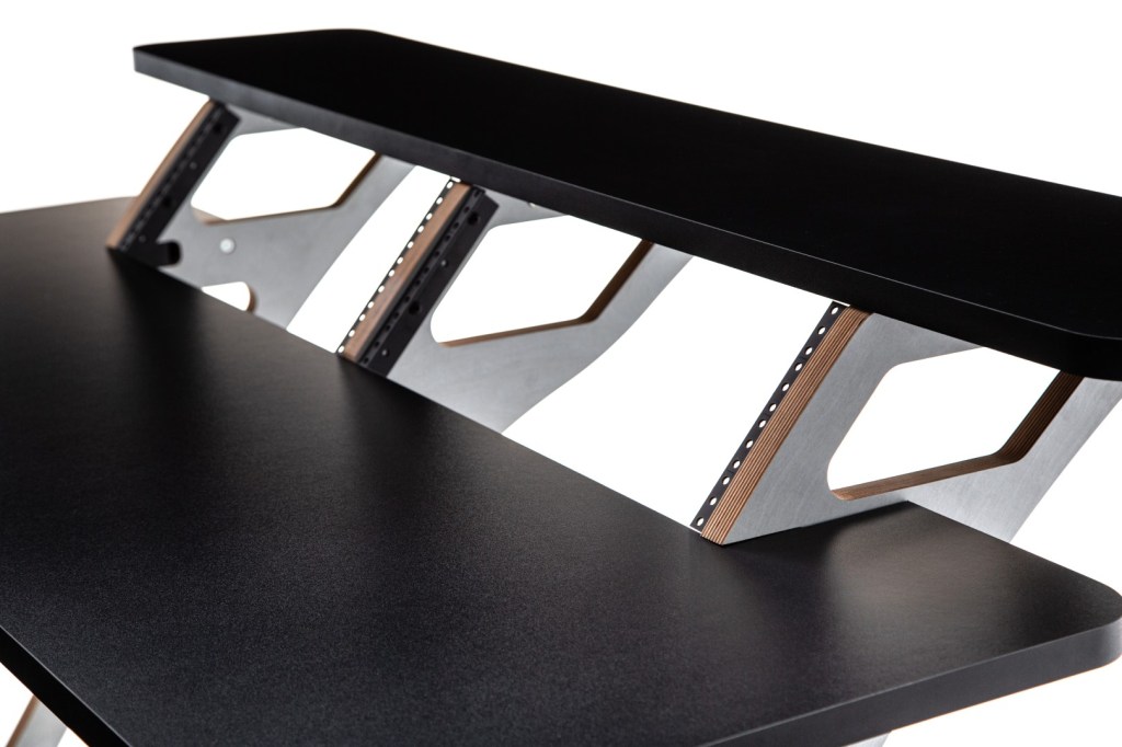 When space is an issue, Yesk is the solution. With its very compact footprint, this production desk creates a lot of room on three levels, and further provides rack space for your outboard equipment. While some larger workstations can feel like they dominate a room, the slender design of Yesk always leaves breathing room for comfort.